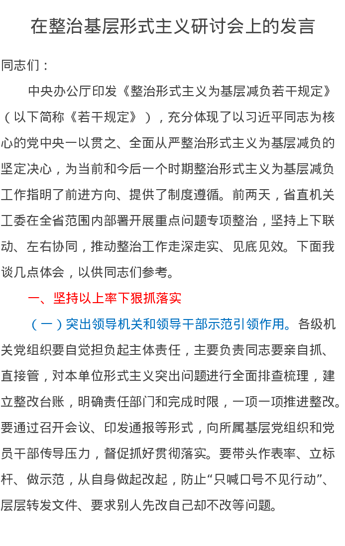 在整治基层形式主义研讨会上的发言
