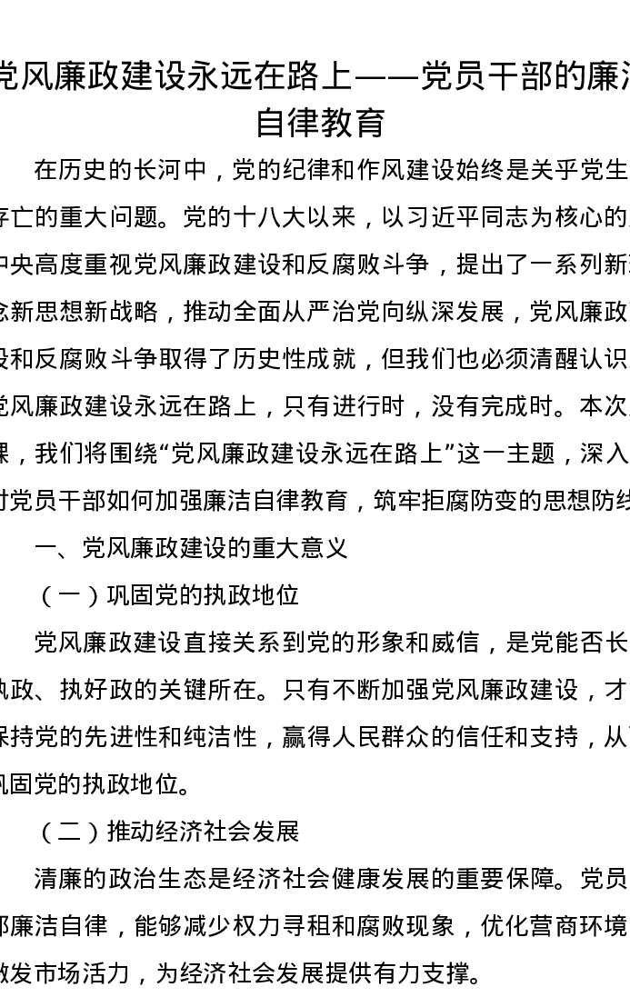 党风廉政建设永远在路上——党员干部的廉洁自律教育