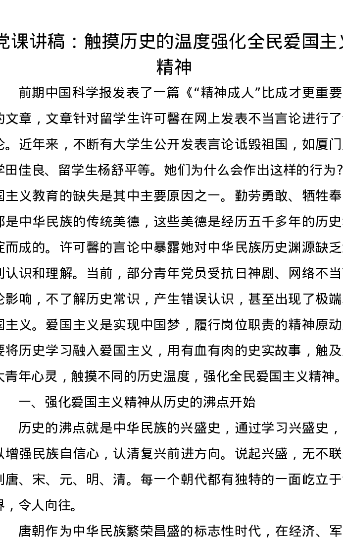 党课讲稿:触摸历史的温度强化全民爱国主义精神