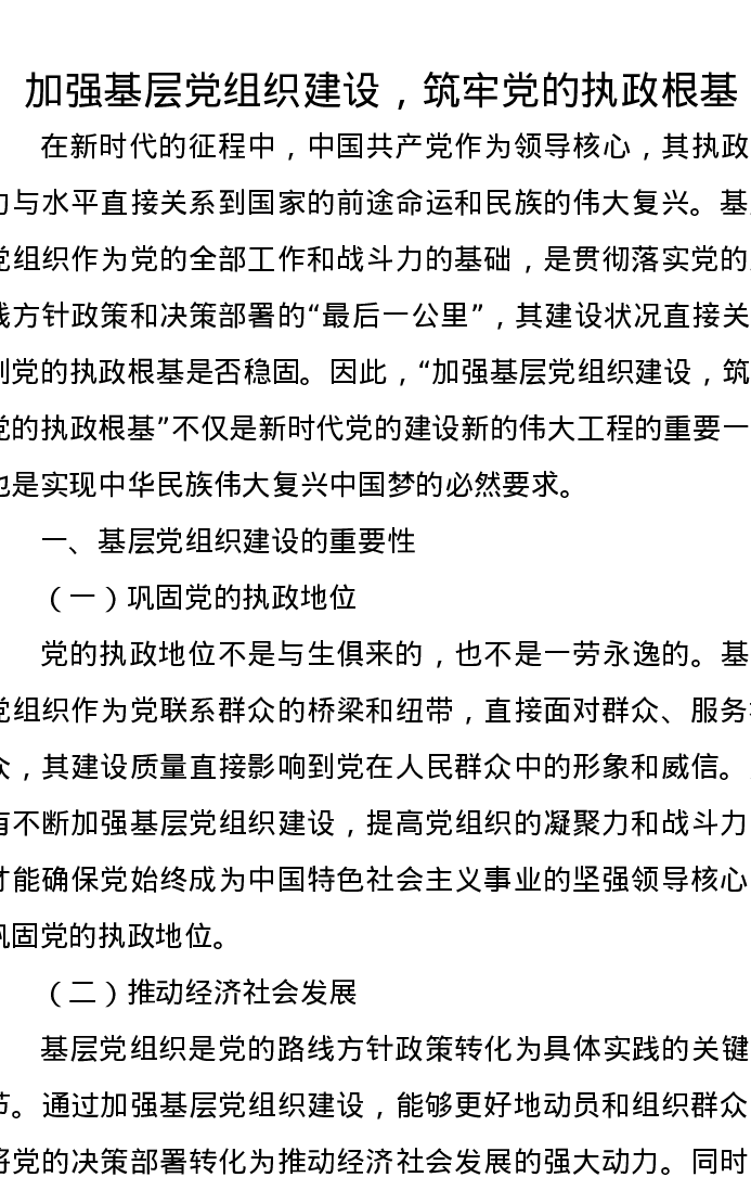 党课讲稿:加强基层党组织建设,筑牢党的执政根基
