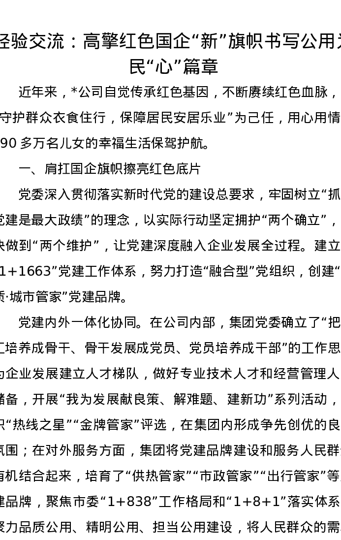 经验交流:高擎红色国企“新”旗帜书写公用为民“心”篇章