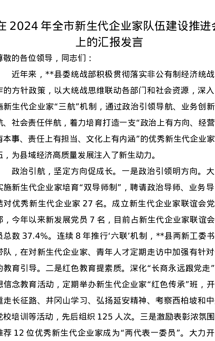 在2024年全市新生代企业家队伍建设推进会上的汇报发言