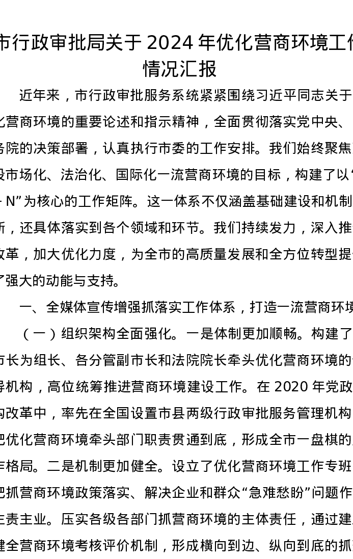 市行政审批局关于2024年优化营商环境工作情况汇报