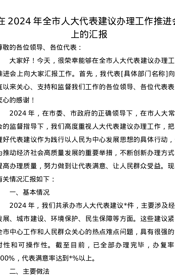 在2024年全市人大代表建议办理工作推进会上的汇报
