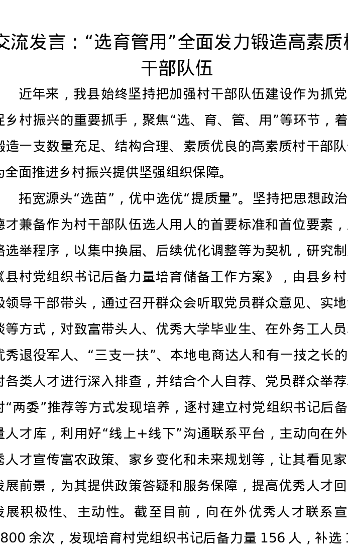 交流发言:“选育管用”全面发力锻造高素质村干部队伍