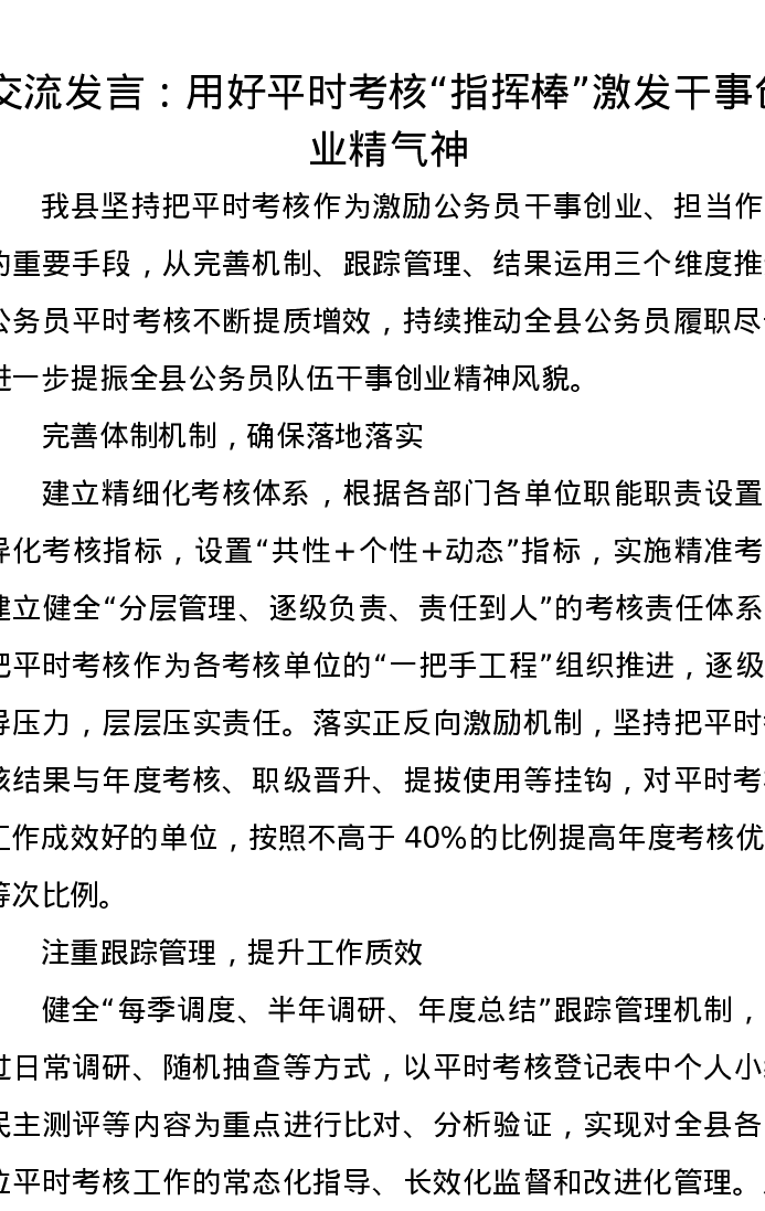 交流发言:用好平时考核“指挥棒”激发干事创业精气神