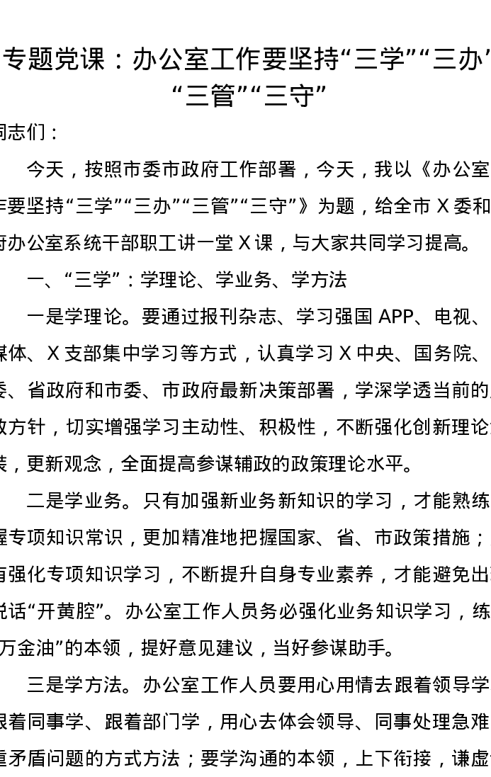 党课讲稿:办公室工作要坚持“三学”“三办”“三管”“三守”