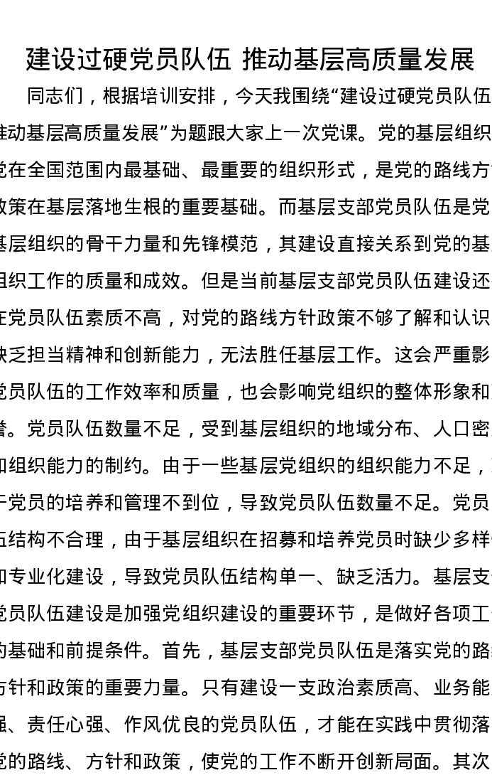 党课讲稿:建设过硬党员队伍推动基层高质量发展