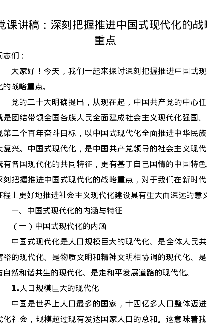 党课讲稿:深刻把握推进中国式现代化的战略重点