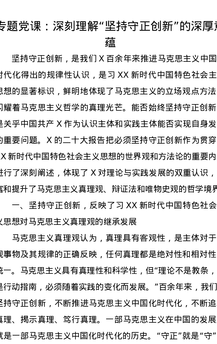 党课讲稿:深刻理解“坚持守正创新”的深厚意蕴