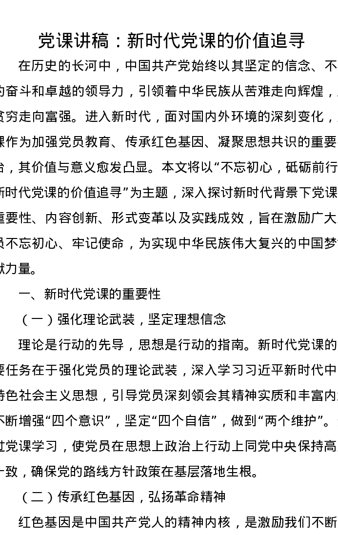 党课讲稿:新时代党课的价值追寻