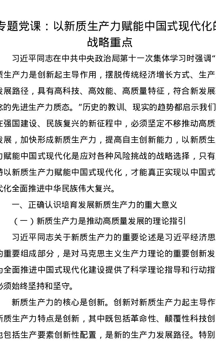 党课讲稿:以新质生产力赋能中国式现代化的战略重点
