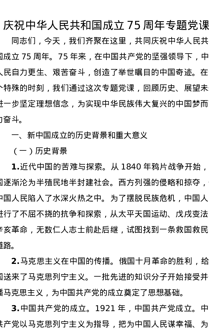 庆祝中华人民共和国成立75周年专题党课讲稿