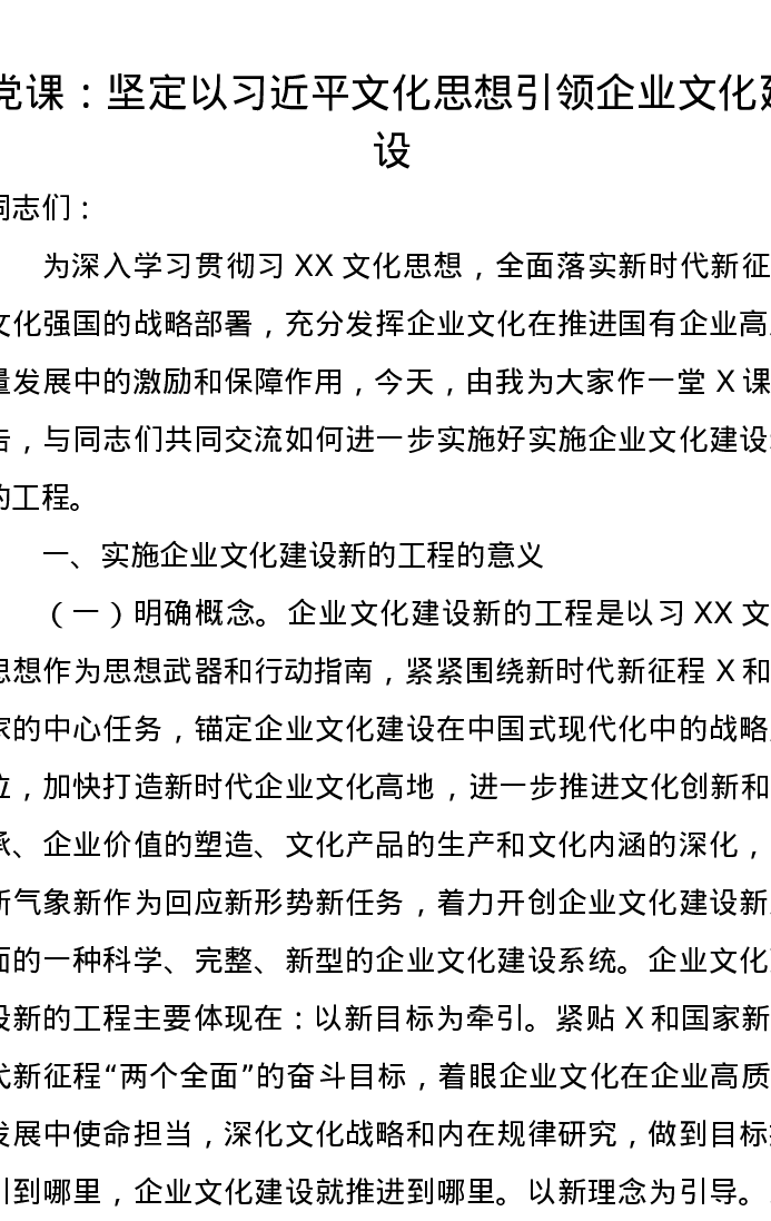 党课讲稿:坚定以习近平文化思想引领企业文化建设