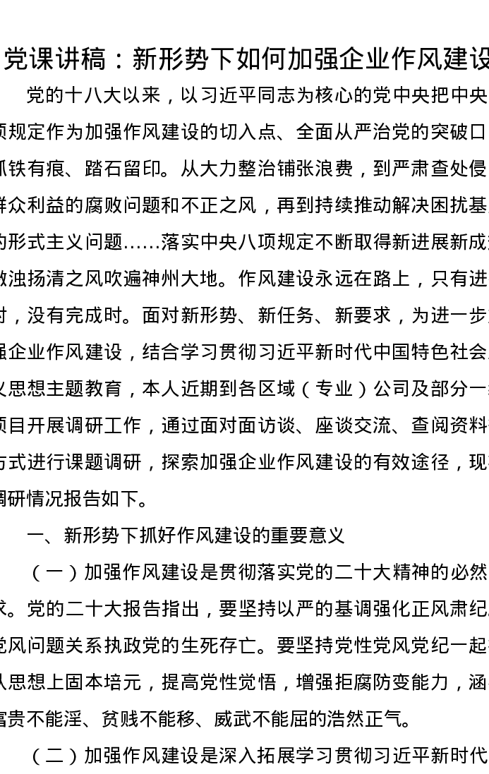 党课讲稿:新形势下如何加强企业作风建设