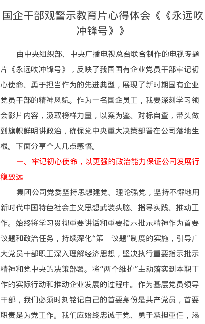 国企干部观警示教育片心得体会《《永远吹冲锋号》》