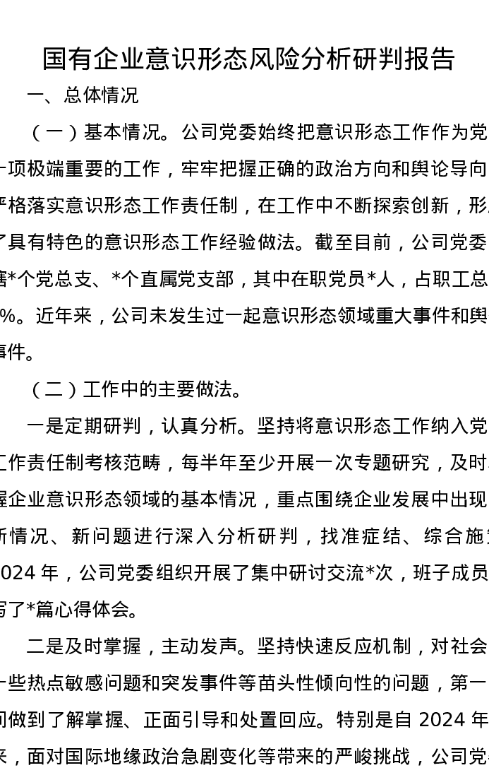 国有企业意识形态风险分析研判报告