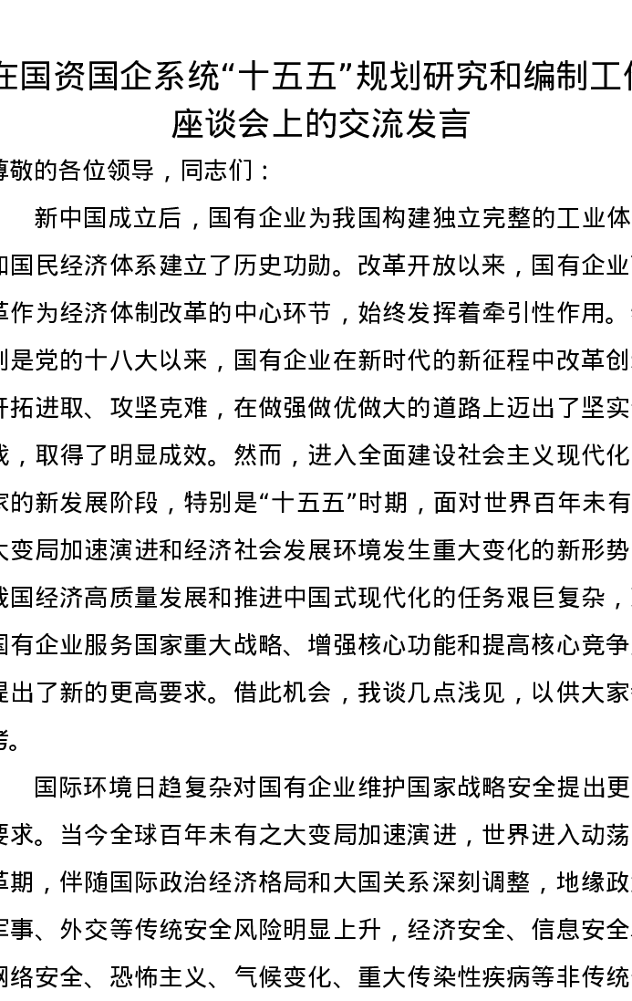 在国资国企系统“十五五”规划研究和编制工作座谈会上的交流发言