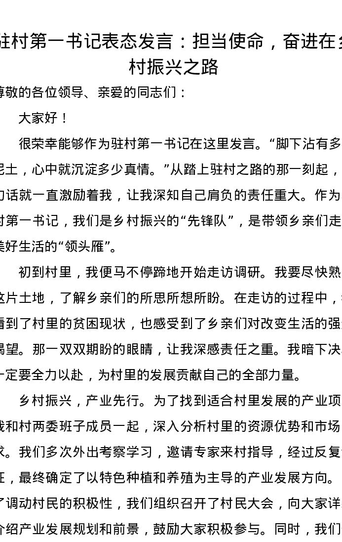 驻村第一书记表态发言:担当使命,奋进在乡村振兴之路