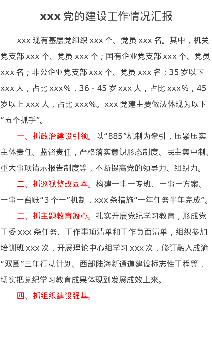 xxx党的建设工作情况汇报