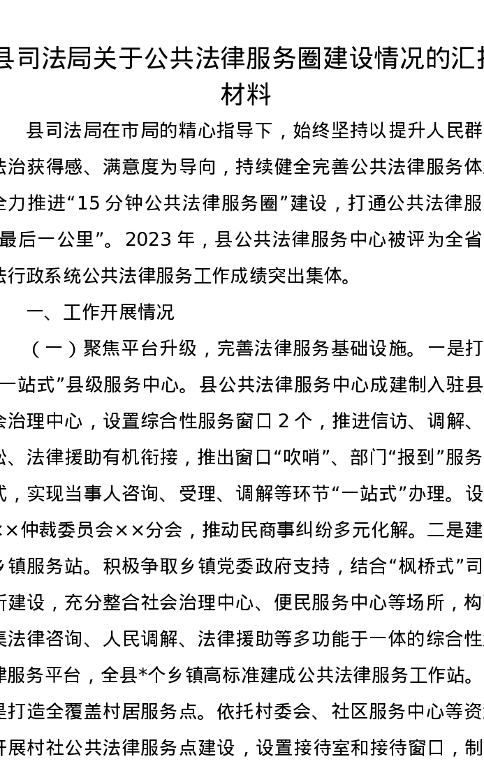 县司法局关于公共法律服务圈建设情况的汇报材料