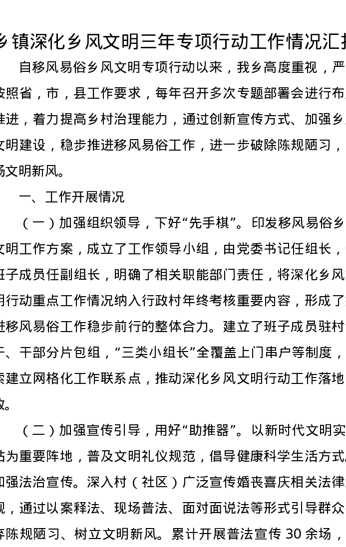 乡镇深化乡风文明三年专项行动工作情况汇报