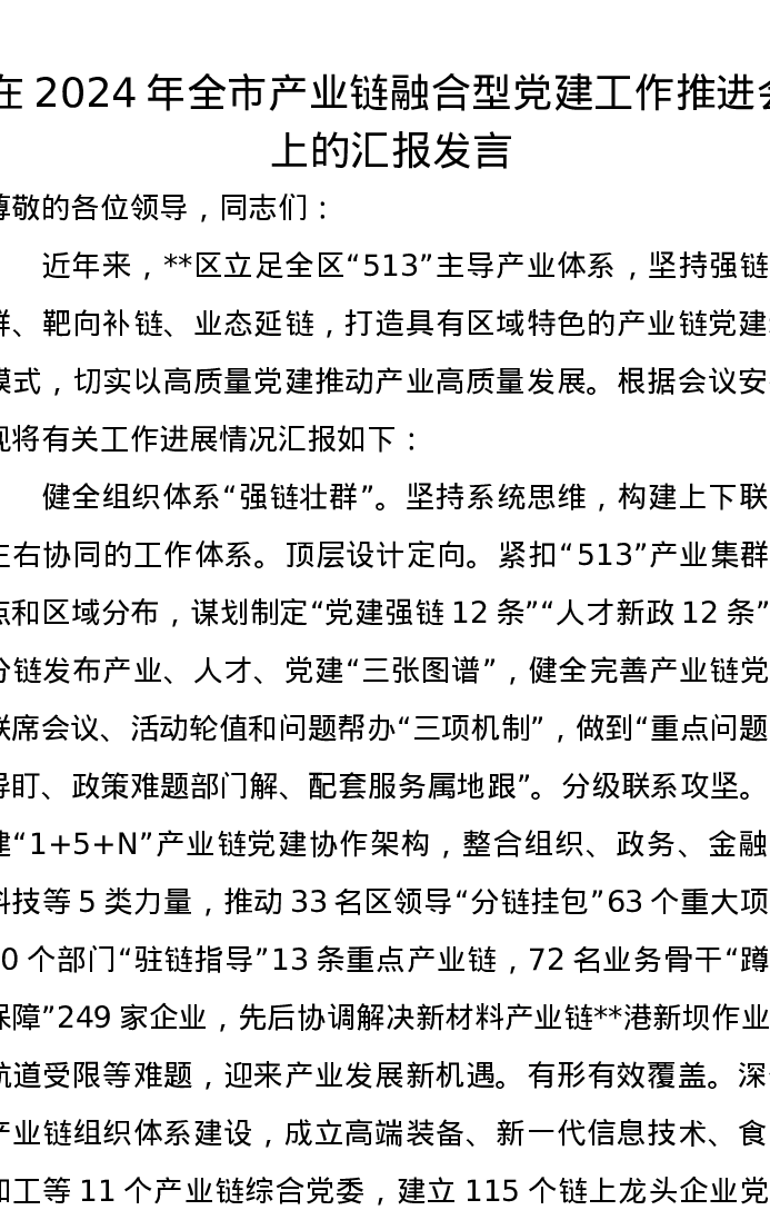在2024年全市产业链融合型党建工作推进会上的汇报发言