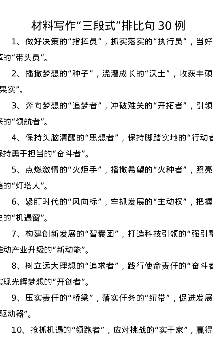材料写作“三段式”排比句30例
