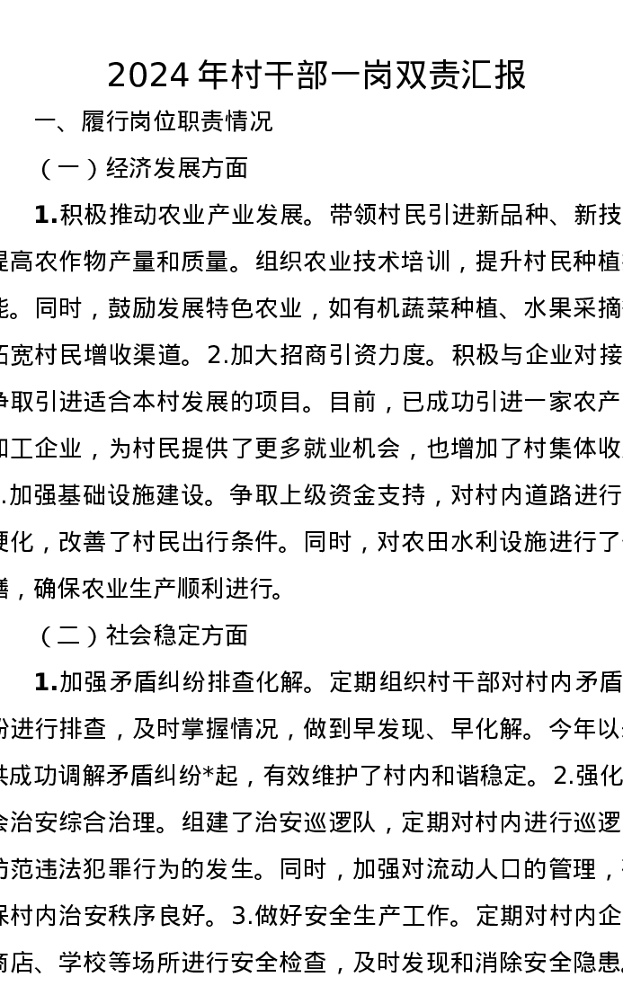2024年村干部一岗双责汇报