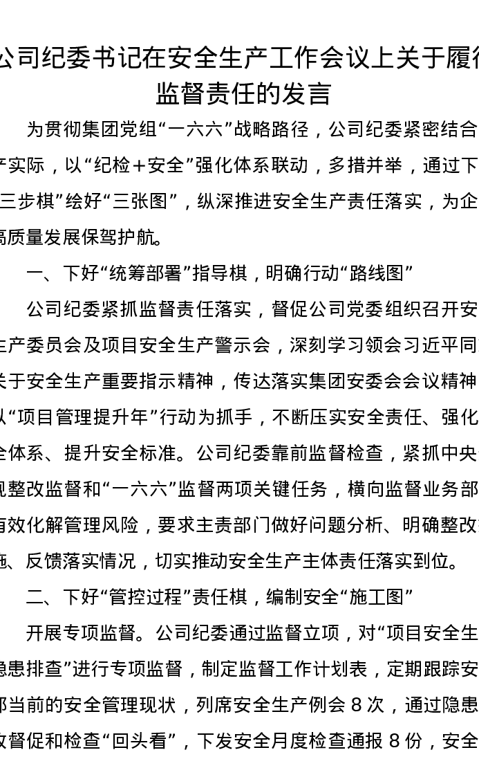 公司纪委书记在安全生产工作会议上关于履行监督责任的发言