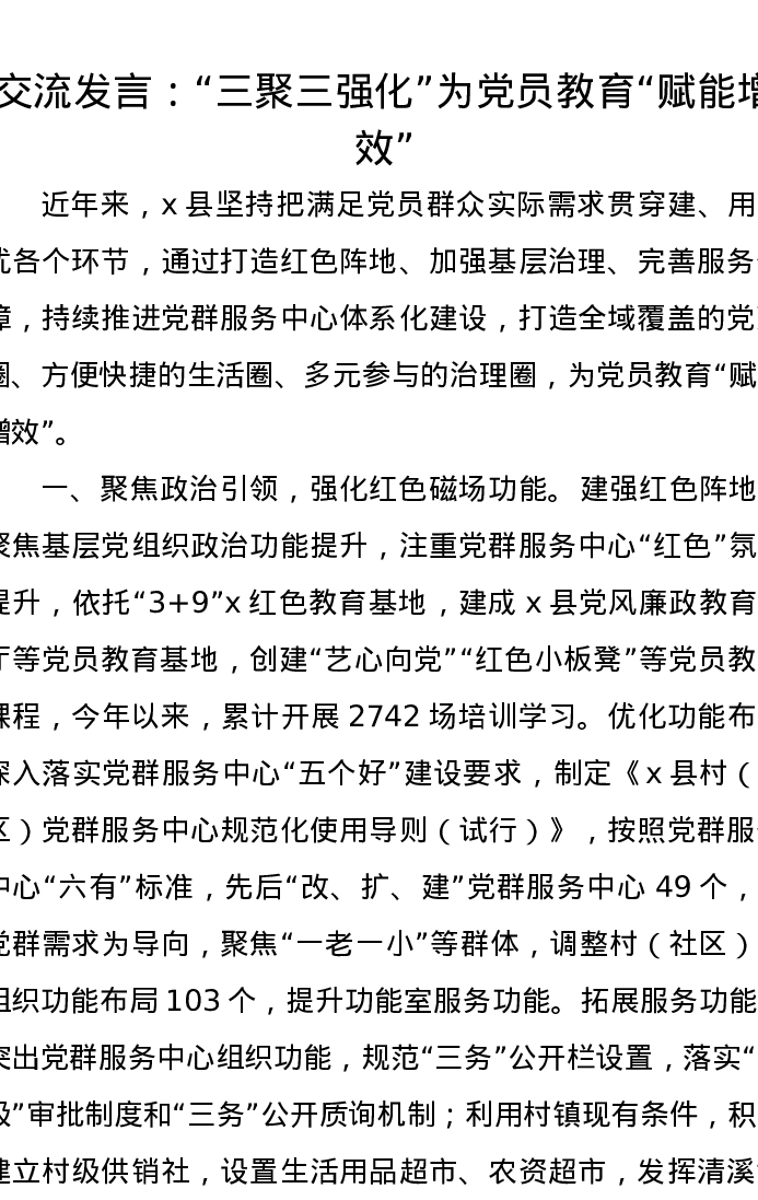 交流发言:“三聚三强化”为党员教育“赋能增效”