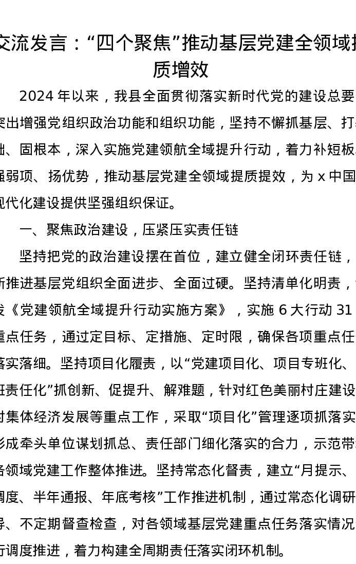 交流发言:“四个聚焦”推动基层党建全领域提质增效