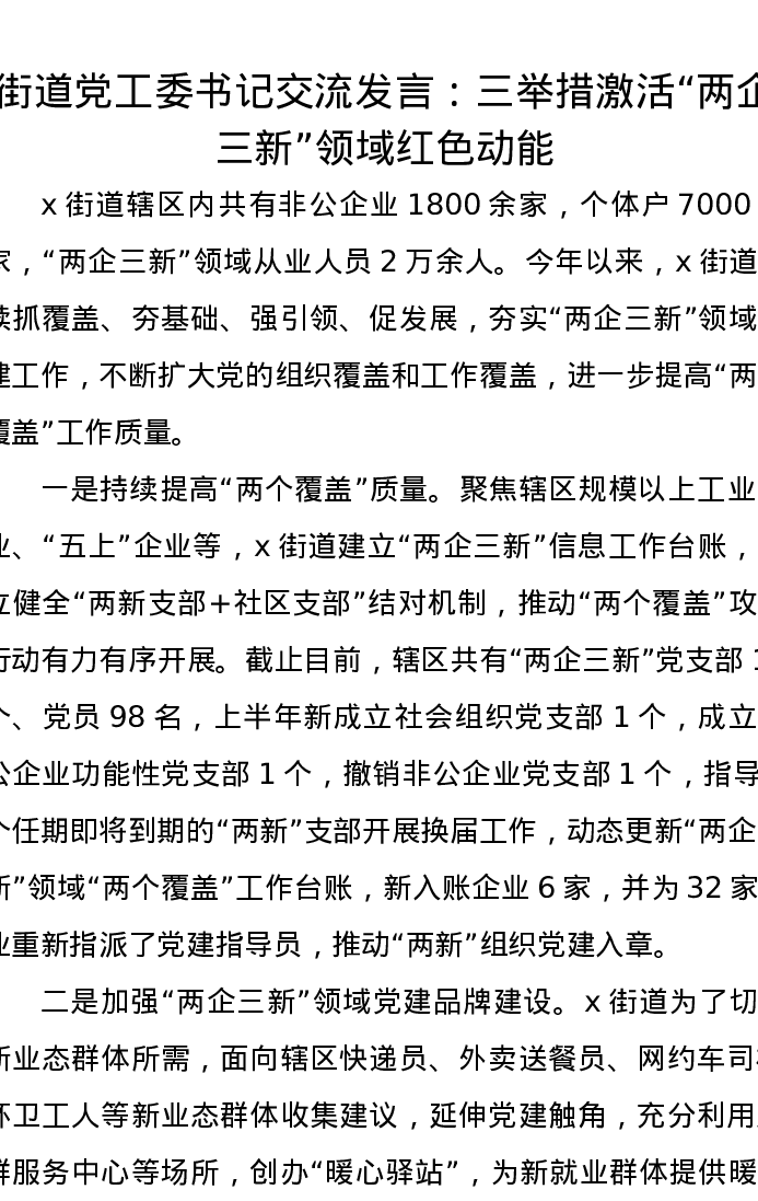 街道党工委书记交流发言:三举措激活“两企三新”领域红色动能