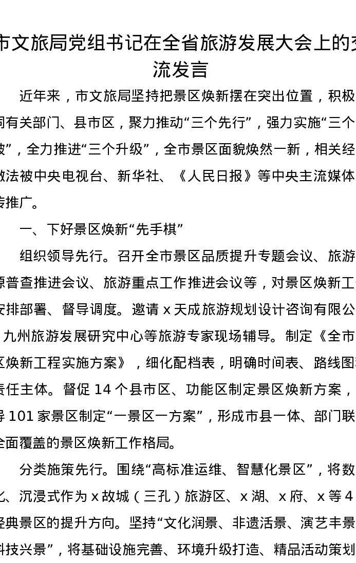 市文旅局党组书记在全省旅游发展大会上的交流发言