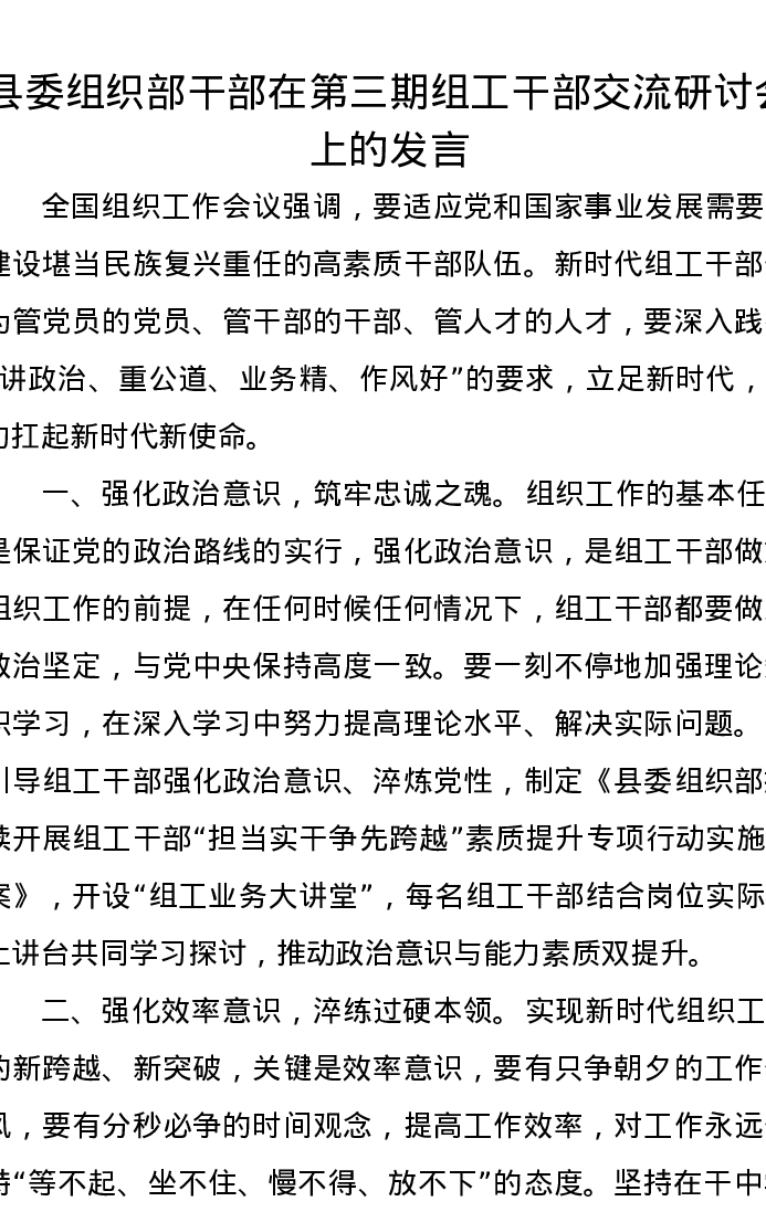 县委组织部干部在第三期组工干部交流研讨会上的发言