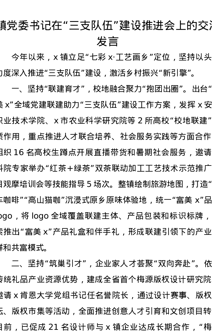 镇党委书记在“三支队伍”建设推进会上的交流发言