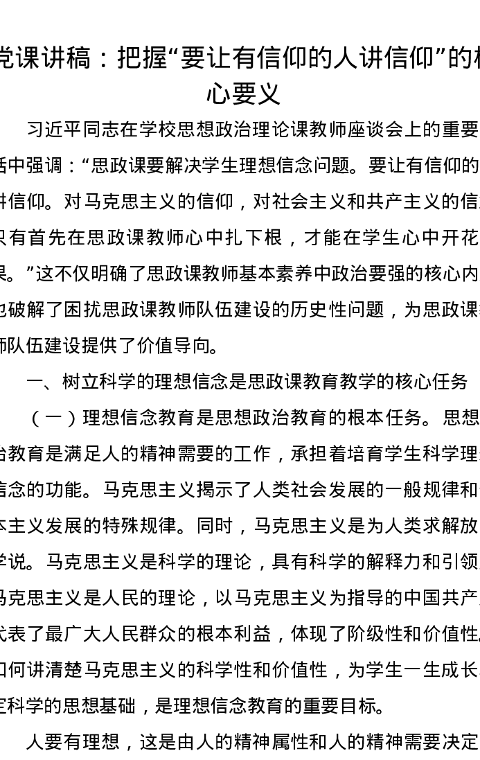 党课讲稿:把握“要让有信仰的人讲信仰”的核心要义
