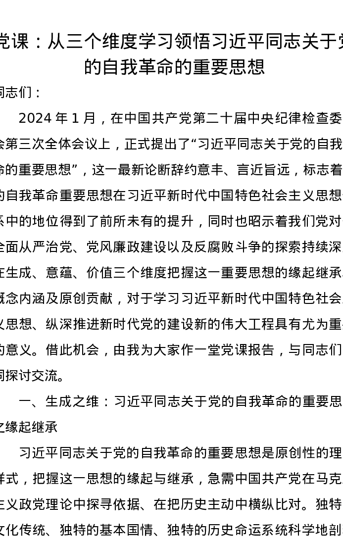 党课讲稿:从三个维度学习领悟习近平总书记关于党的自我革命的重要思想