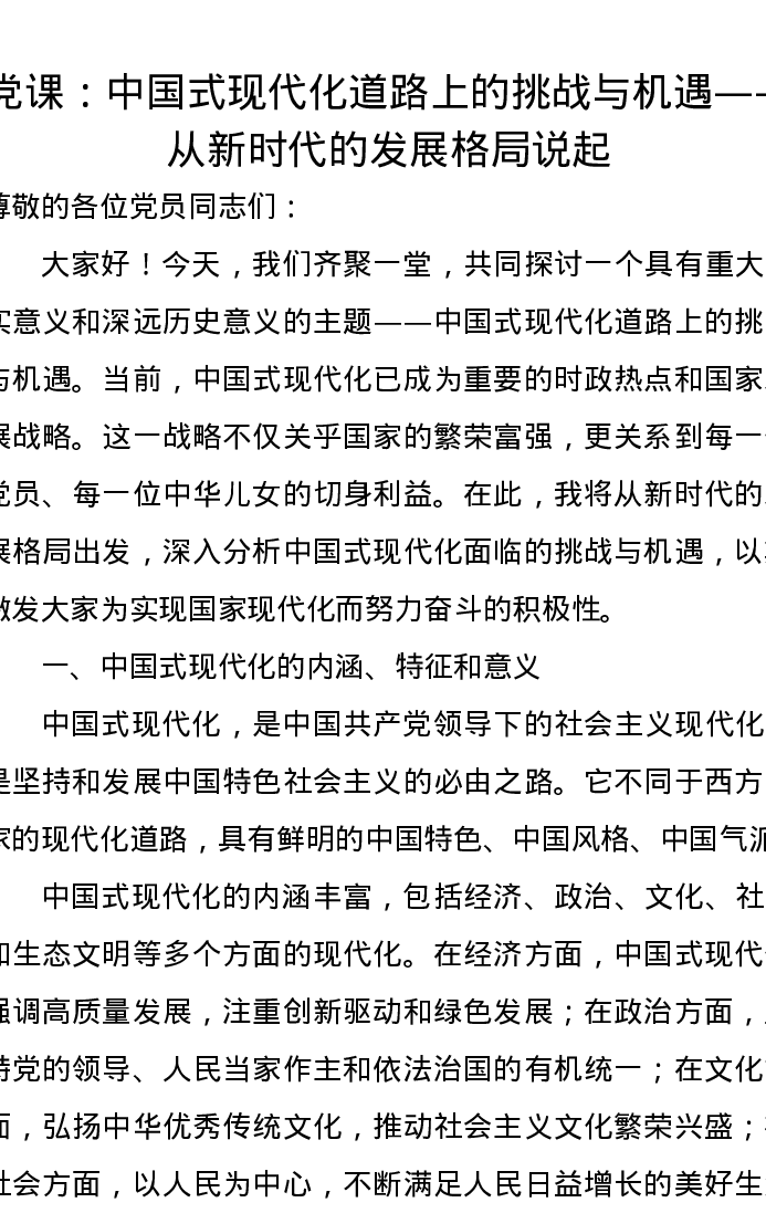 党课讲稿:中国式现代化道路上的挑战与机遇,——,从新时代的发展格局说起