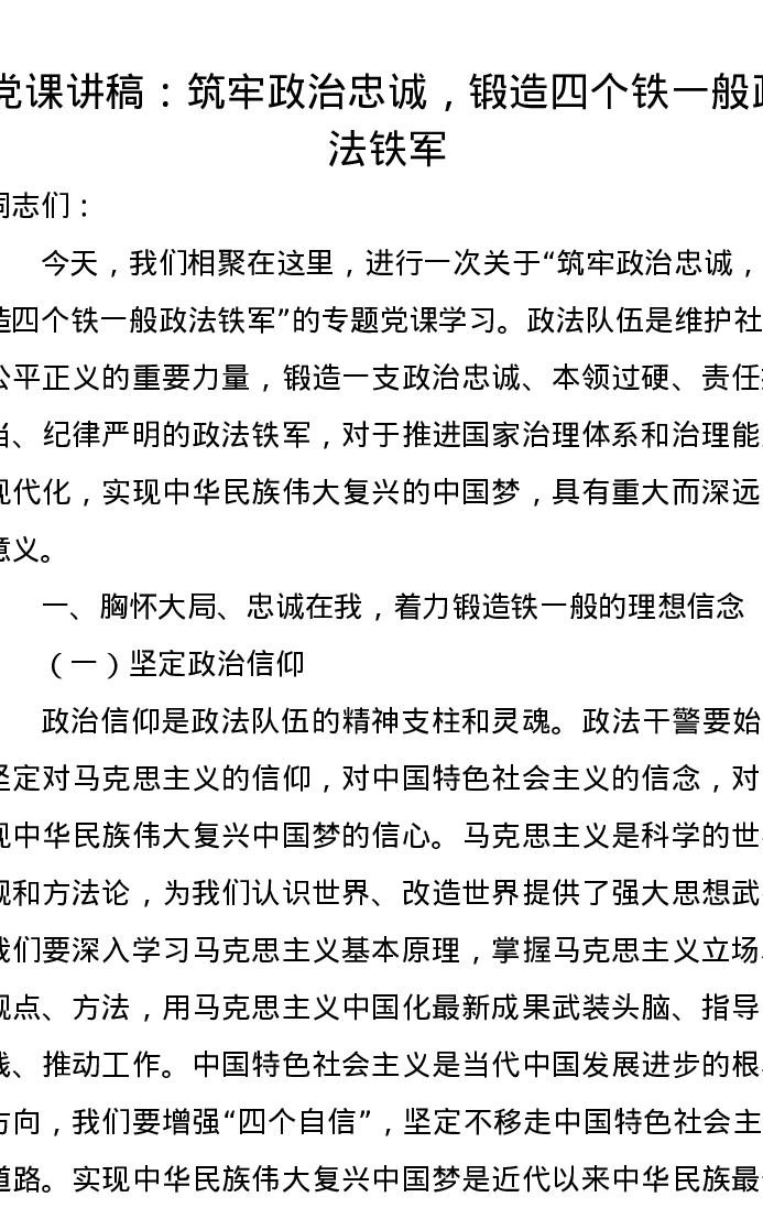 党课讲稿:筑牢政治忠诚,锻造四个铁一般政法铁军