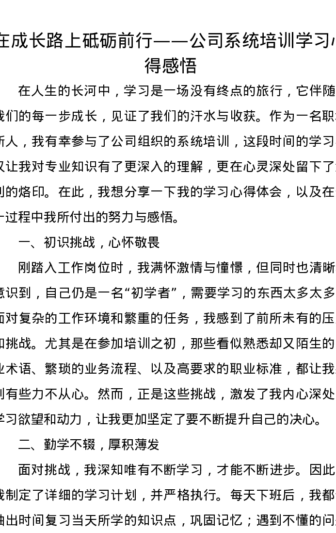 在成长路上砥砺前行——公司系统培训学习心得感悟