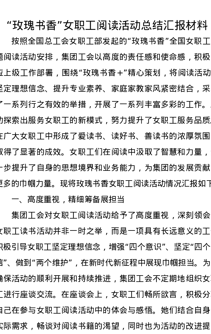 “玫瑰书香”女职工阅读活动总结汇报材料