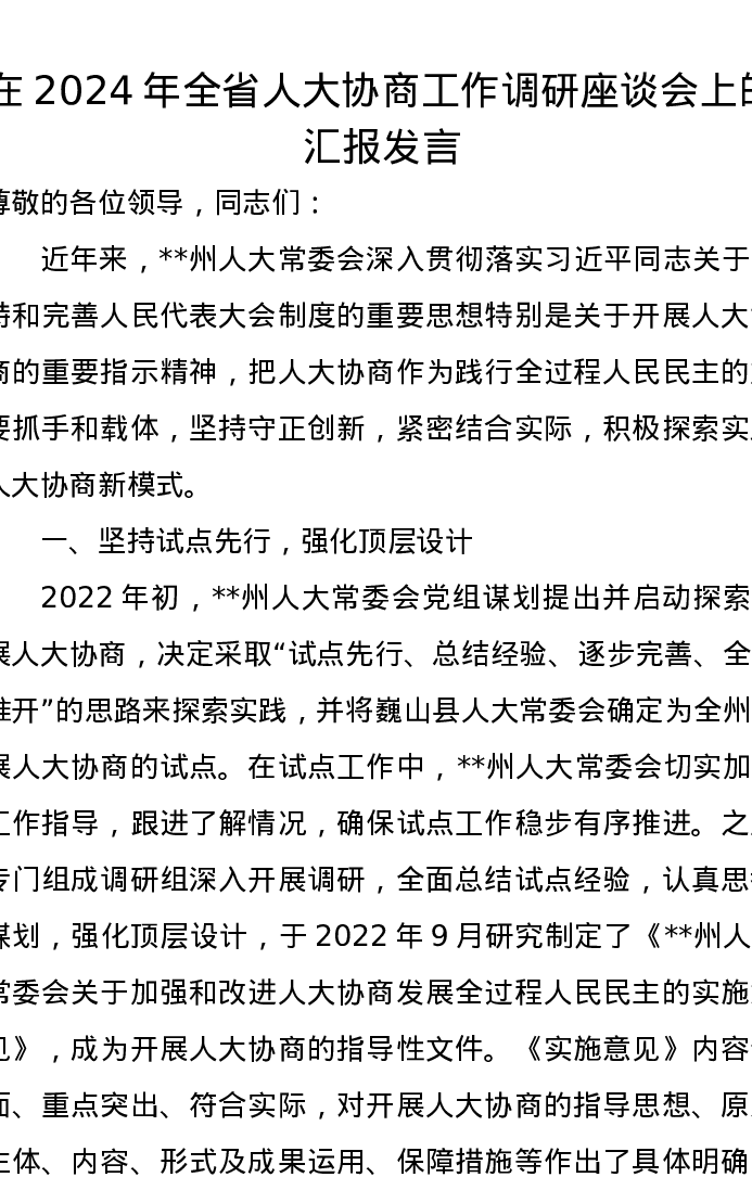 在2024年全省人大协商工作调研座谈会上的汇报发言
