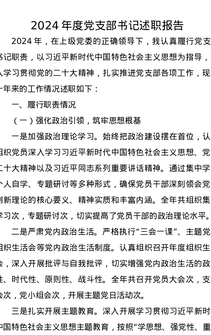 2024年度党支部书记述职报告