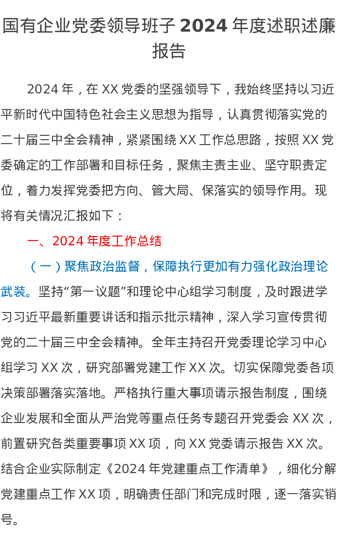 国有企业党委领导班子2024年度述职述廉报告