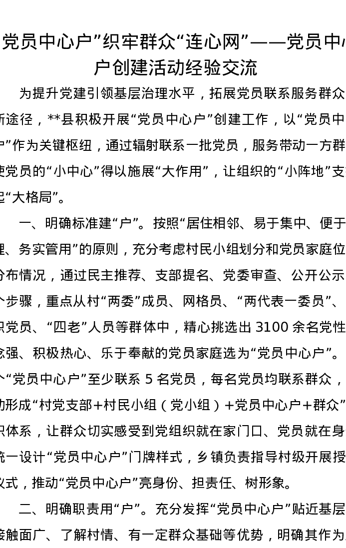 “党员中心户”织牢群众“连心网”——党员中心户创建活动经验交流