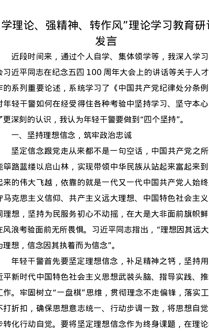 “学理论、强精神、转作风”理论学习教育研讨发言
