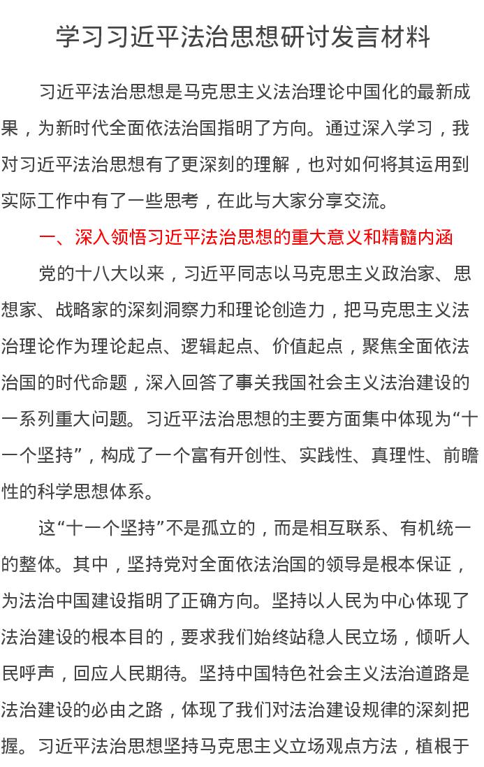 学习习近平法治思想研讨发言材料