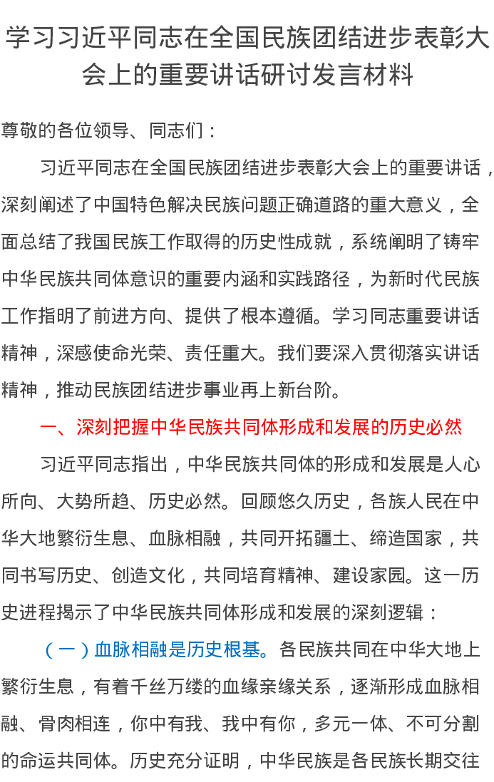 学习习近平总书记在全国民族团结进步表彰大会上的重要讲话研讨发言材料
