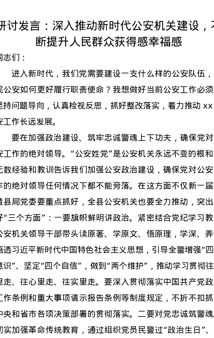 研讨发言:深入推动新时代公安机关建设,不断提升人民群众获得感幸福感